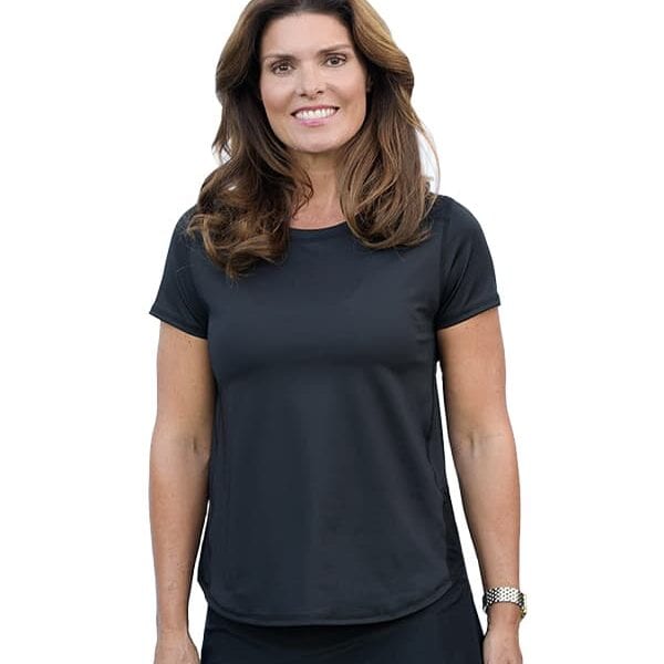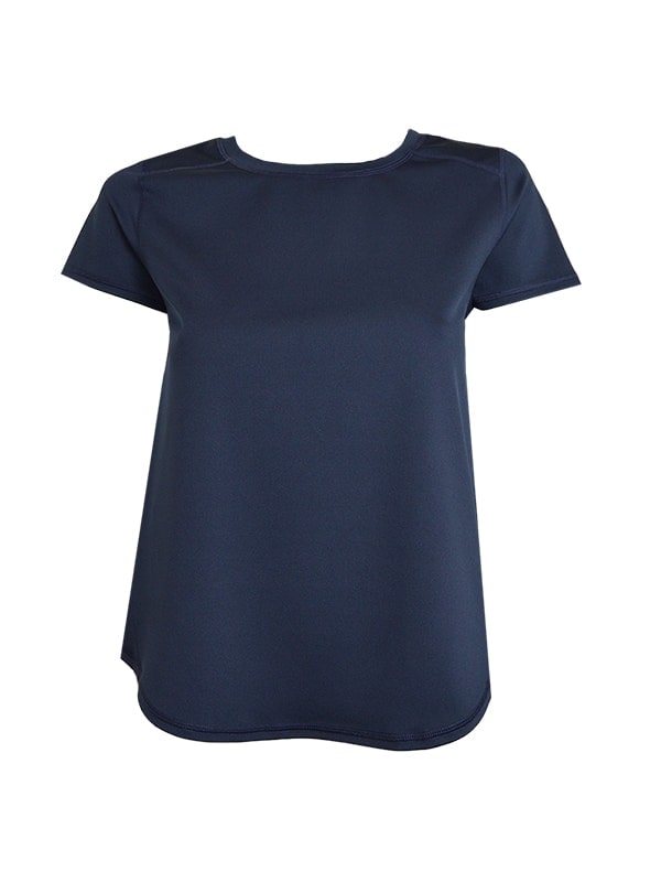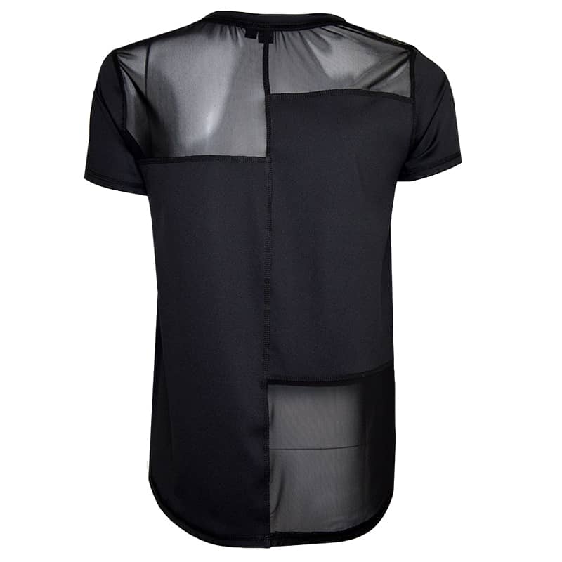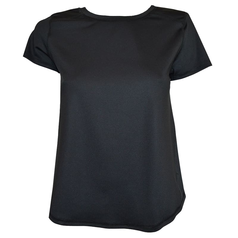 This glide-short sleeve top is sewn in breathable polyester fabric with mesh back detail. Fit is skim the top with a loose-fit bottom. It can be worn for any activity. I suggest you size down if you wear a smaller size in some tops.