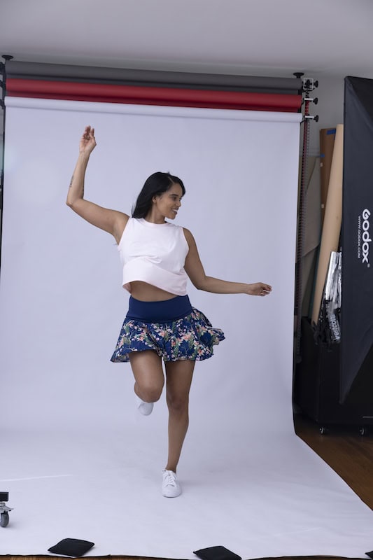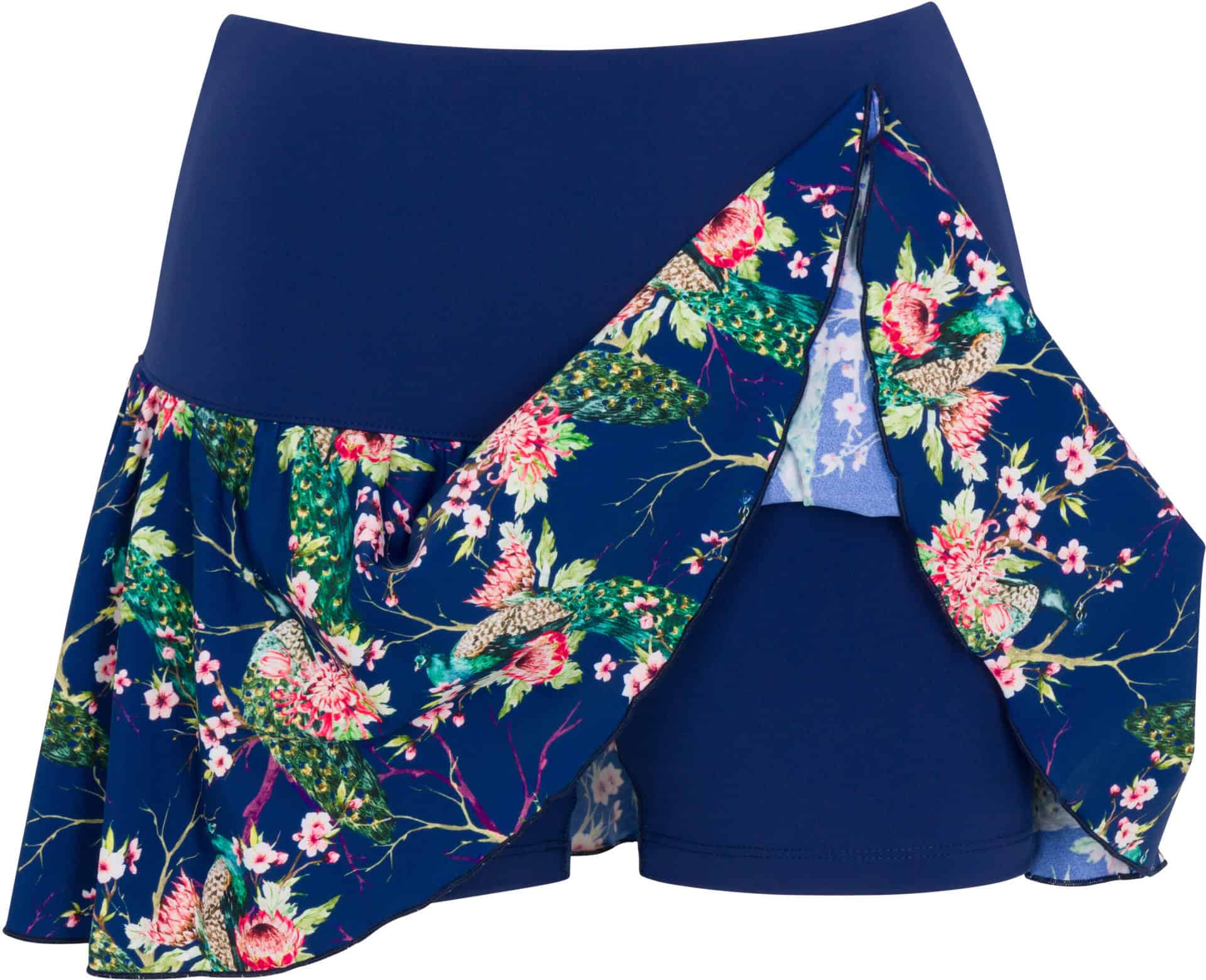 This flounce ruffle skirt is perfect for tennis, pickleball, or weekend athleisure. It has a solid, navy matching undershort and a high waistband for added compression.
