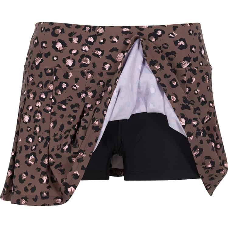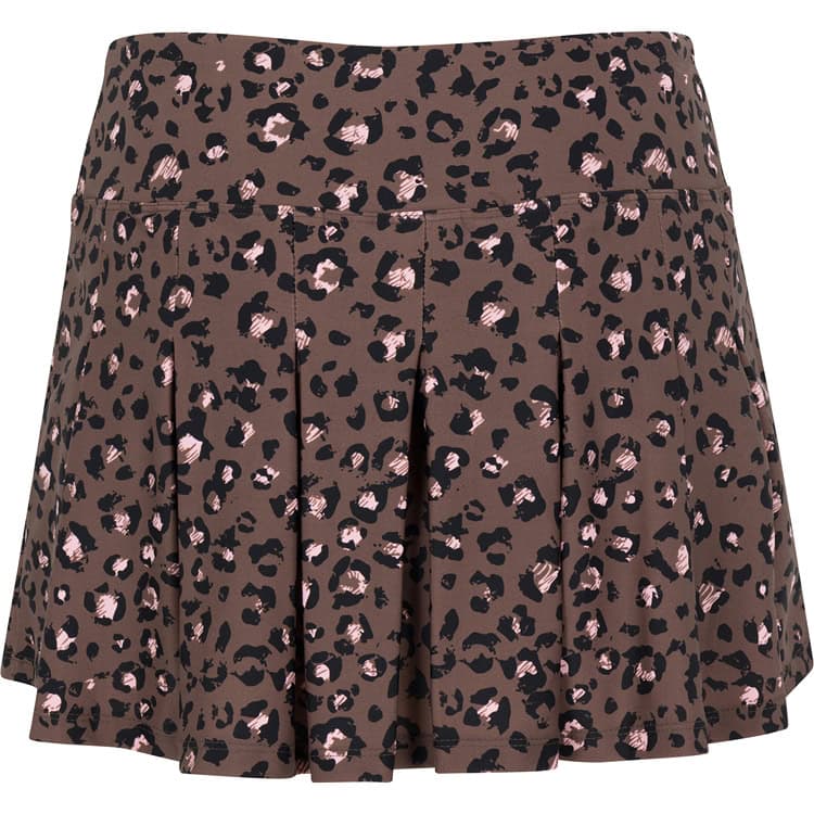 BPassionit Pleated Tennis Skirt is a Leopard print classic, with a touch of soft pink. Skirt features flat, wide pleats with an attached black, moisture-wicking undershort.