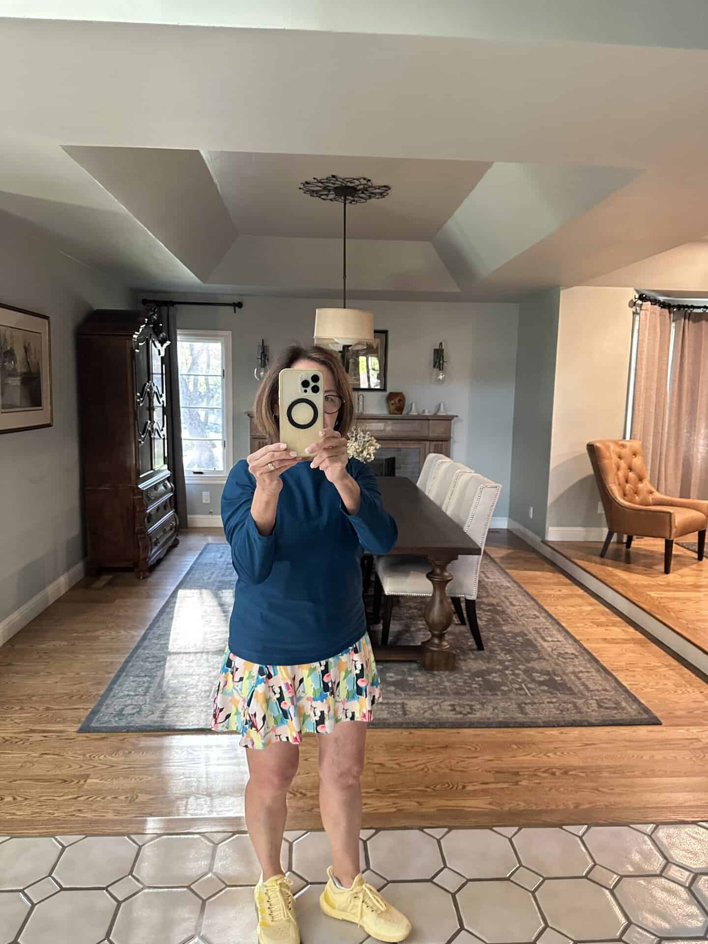 This breathable move-racer blue mesh top is excellent for tennis, pickleball, golf, or any activity you choose. The long-sleeved top has a rounded neckline at the front, with center-back detail.